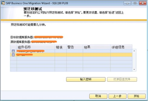 這里要開(kāi)始進(jìn)行預(yù)遷移測(cè)試,對(duì)選定的公司數(shù)據(jù)庫(kù)進(jìn)行預(yù)測(cè)試。向?qū)?huì)檢測(cè)所選公司數(shù)據(jù)庫(kù)是否能夠完成遷移,選擇'開(kāi)始':