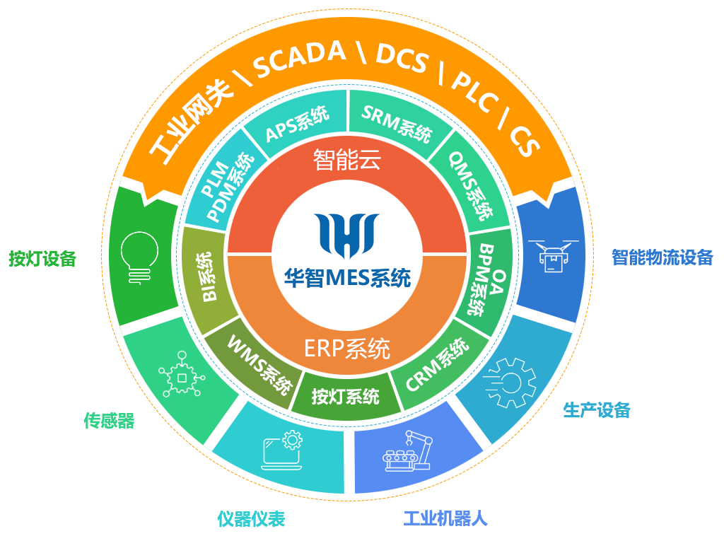 華智MES系統(tǒng)涵蓋人、機、料、法、 環(huán)、測6大管理重心,輔助企業(yè)做好生產(chǎn)計劃、過程管控、質(zhì)量追溯、物料管理、設(shè)備管理、模具管理、安燈管理、安全環(huán)境管理等生產(chǎn)相關(guān)的管理內(nèi)容。在滿足精細化管理的同時,充分考慮降低管理成本和對人員的依賴,通過人性化的功能設(shè)計、自動化的數(shù)據(jù)采集、智能化的管理看板,可以為中層管理和高層決策提供及時有效的數(shù)據(jù)依據(jù)。系統(tǒng)也可實現(xiàn)通過物聯(lián)網(wǎng)、云計算、邊緣計算等技術(shù)應(yīng)用,實現(xiàn)工廠內(nèi)部、集團化公司多廠聯(lián)動、業(yè)務(wù)伙伴(供應(yīng)商、客戶)之間的業(yè)務(wù)協(xié)同和數(shù)據(jù)互通。